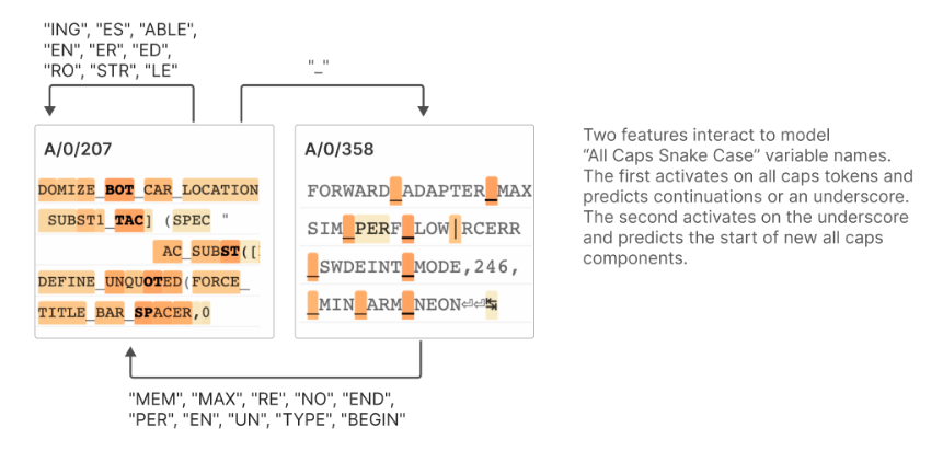 - Two features interact in loop to model “All Caps Snake Case” variable names