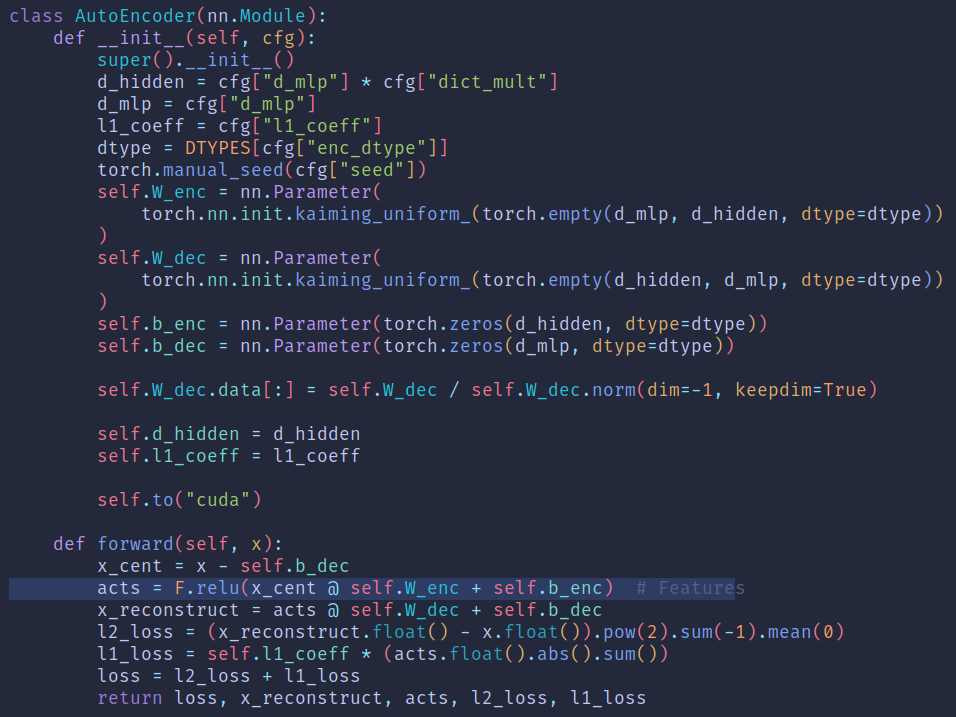 - \(\mathbf{x} \in \mathbb{R}^{n}\) are the MLP activations; \(\mathbf{f} \in \mathbb{R}^{m}\) are the features