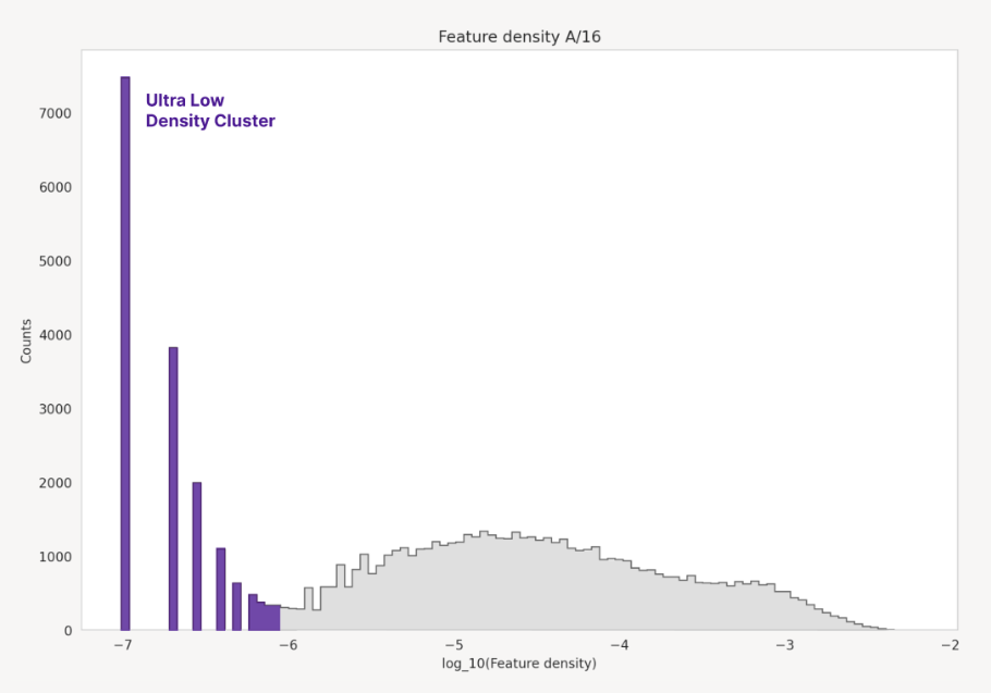 - Feature density := fraction of tokens on which the feature has a nonzero value