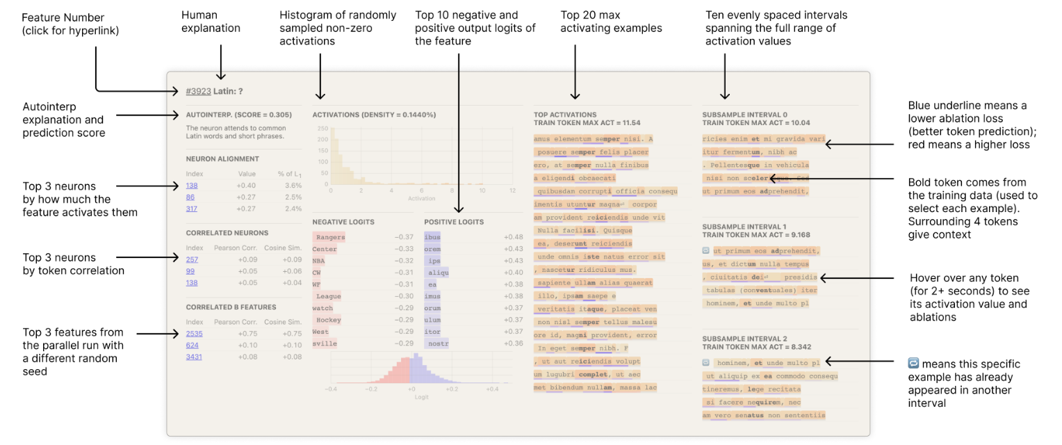 - The features are constructed by a sparse autoencoder trained on the MLP activations